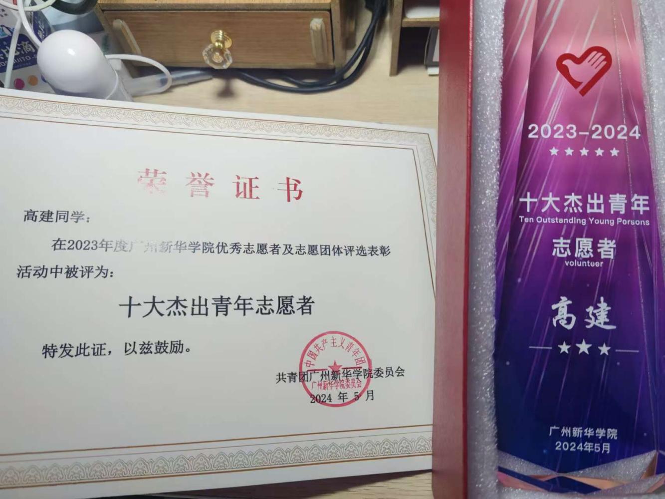 在高建的青春画卷中,志愿服务无疑是浓墨重彩的一笔。校园“美化校园”行动中,清晨时分,他手持扫帚,清扫主干道,并耐心地摆起掉落的自行车。周末的图书馆里,他化身为书籍的“摆渡人”,整理书架、为读者答疑解惑,为孩子们开启阅读之门。疫情期间,高建挺身而出,成为抗疫的坚实力量。在公司的疫苗接种和核酸检测点,高建不仅布置场地、准备物资,而且在检测开始后,耐心引导师生排队,时刻提醒保持安全距离,细致解答各类疑问。扫码时,他操作熟练,保证信息快速准确录入。在疫苗接种现场,高建协助医护人员维持秩序,安抚师生的紧张情绪。志愿防疫的208个小时里,高建为校园拉起了一道安全防线。自入学以来,高建的累计志愿服务时长已达到784小时,并获得了2024年太阳成集团tyc122cc“十大杰出青年志愿者”、2023年太阳成集团tyc122cc“百名优秀志愿者”、太阳成集团tyc122cc第六届“美化校园行动”优秀志愿者、广东省资质认定“三星志愿者”、连续两年太阳成集团tyc122cc满天星志愿服务队“优秀志愿者”等志愿奖项。高建坚信“以奋斗诠释责任担当,用奉献书写不凡篇章”。