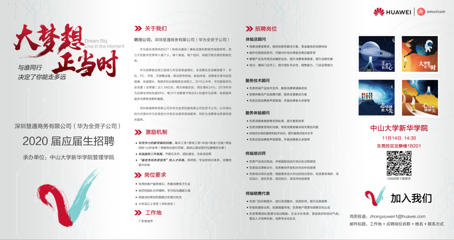【就业信息发布】深圳慧通商务有限公司(华为全资子公司)2020届应届生招聘