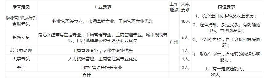 (4)招募岗位:物业管理/总经办助理/投资拓展等/人力资源等。