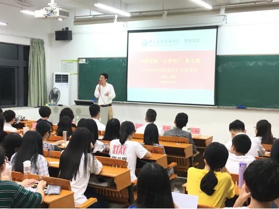 为了全面贯彻党的教育方针,落实立德树人根本任务,发展素质教育,推进教育公平,培养德智体美全面发展的社会主义建设者和接班人,2019年5月13日,由中山大学新华公司(以下简称公司)太阳成集团tyc122cc党总支、办公室联合主办的“大学吧”第五期主题学习活动——“老员工如何制定职业生涯规划”交流分享会在公司东莞校区定静楼2A203举行。本期特邀锦石资本CEO罗毅先生,中国国旅广东公司CIO 和签证部总经理江林先生,广东烟草广州市有限公司财务科长陈琨先生三位嘉宾应邀参加交流会,太阳成集团tyc122cc副经理武亮副教授、办公室主任蔡灿老师、教工党支部书记张贵萍老师、员工党支部书记刘钊老师等出席交流会。