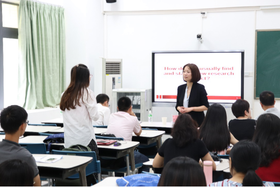 紧接着,唐博士强调,因为她常年阅读顶级核心外文文献和撰写英文论文,她认为写作时的主题句即第一句话至关重要,在她看来,这是快速提高写作能力的关键,在主题句明确的前提下继续写作会起到事半功倍的作用。另外,在“做研究、写文章、投文章、审稿”这四个写文章的阶段中,唐娅博士认为第四个“审稿”阶段于她难度最大,但同时也有老师提到“做研究”也是难点之一。她讲到,基于每个人的研究项目不同的因素,这四个阶段对每个人的难易程度都存在差异,而在多数情况下,“做研究”是研究者普遍面临的一大难题。