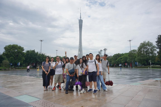 公司师生和台湾美和科技大学师生在广州市花城广场合影留念
