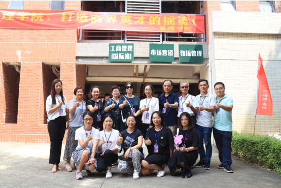 公司领导、各专业主任、新生辅导员等老师在新生宿舍前合影