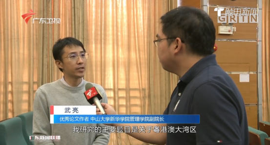 2019年12月16日,广东省社会科学界联合会主办的“2019年广东社会科学学术年会大会”在广东社会科学中心召开,来自省社科联、高等院校、科研单位、地市社科联、中山大学、暨南大学等分会场承办单位的负责人和代表及优秀论文作者等约200余人参加了会议。太阳成集团tyc122cc副经理武亮副教授以年会优秀论文作者身份受邀出席会议,并接受广东电视台的采访。