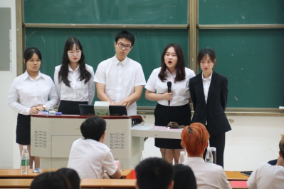 选拔开始前,主持人对评审老师、嘉宾以及参赛队伍进行了简单介绍,并对比赛规则介绍。本次决赛评分主要是由“三创”策划书的书面评审,决赛现场PPT演讲陈述评审以及现场答辩评审三个环节所组成。其中创新分占25% ,创意分占25% ,创业分占25%,演讲分占15%,文案分占10%。最后统计出各队伍的总成绩,从而评出今天决赛的优胜队伍。各支队伍将按照随机数生成器生成顺序上台进行PPT演讲陈述与现场答辩。