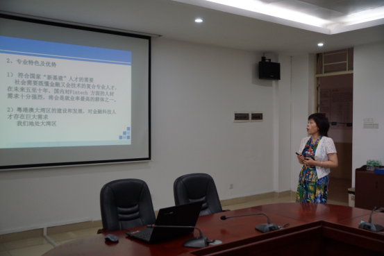 公司金融科技专业负责人毕秋香副教授分别向各位专家介绍了金融科技专业的基本情况、专业特色及优势、专业建设情况和专业发展计划,提出了在招生不到一年时间的情况下,专业建设过程中遇到的困难与不足。专家组听取金融科技专业汇报后,大家对金融科技专业的发展前景表示肯定,并提出金融科技专业建设需要加强和重视高水平的团队引进,应利用好现有实验室资源,加快实习合作单位开拓,构建专用实验室,做好迎接教育部的抽查和评估的准备。