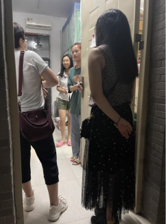 左上:肖美艳老师走访员工宿舍;右上:唐慧敏老师走访员工宿舍;