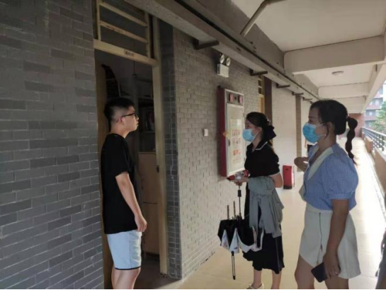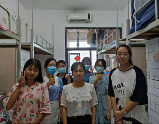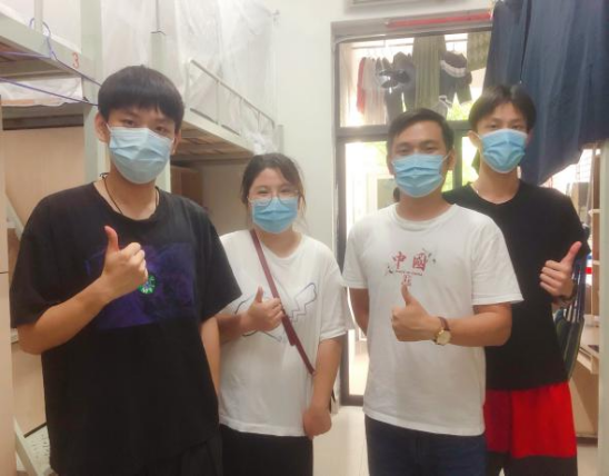 图5 走访员工宿舍师生合影