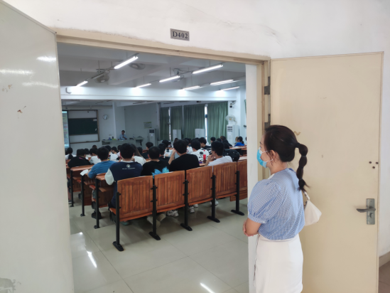 图2 党总支副书记余醒雅认真查看课堂授课情况