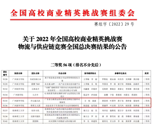 喜讯|公司学子在2022年全国高校商业精英挑战赛物流与供应链竞赛全国总决赛中荣获二等奖