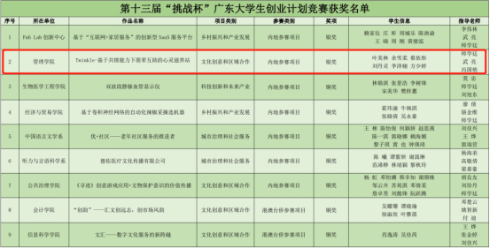 图1 第十三届“挑战杯”广东老员工创业计划竞赛获奖名单