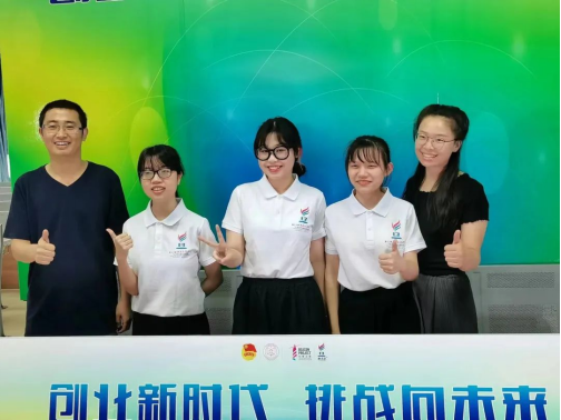 图3 项目团队与校领导、指导老师开幕仪式合影
