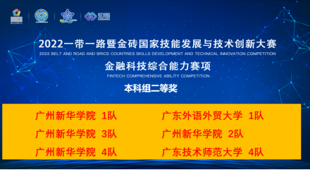 2022年11日6日,一带一路金砖国家技能发展与技术创新大赛金融科技综合能力赛项广东省选拔赛决赛成功举办。公司四支队伍喜获佳绩,获得广东省赛二等奖。