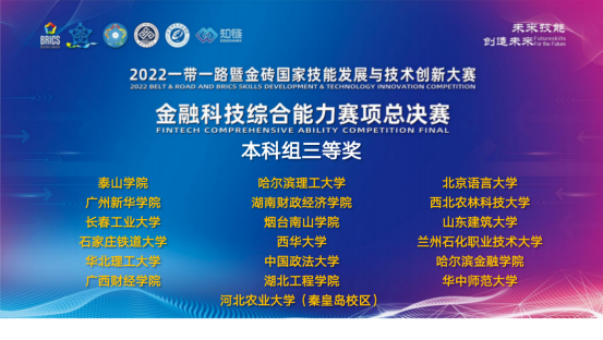 太阳成集团tyc122cc在2022一带一路暨金砖国家金融科技综合能力赛总决赛中荣获全国总决赛三等奖