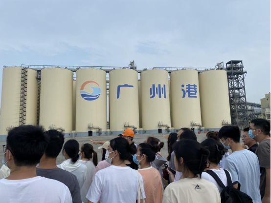 活动伊始,新沙港吴经理首先向同学们介绍了新沙港区是广州港的重要综合性港区,是华南区最大汽车进口口岸。其南部码头区是由广州港新沙港务有限公司负责运营,其以服务散粮、食用油、件杂货等物资运输为主,兼顾集装箱运输。其次在参观时刚好遇见一艘汽车滚装船停靠在新沙港码头装运车辆。吴经理借此具体场景向同学们讲解了新沙港港口功能以及设施设备,以及28个圆筒仓的运作方式。紧接着吴经理带领老师及同学们前往会议室上观看新沙港的宣传片以及前往汽车仓库顶层浏览整个新沙港。通过视频介绍和实地考察相结合的方式,同学们对新沙港港口运作的全貌和规模有了更为详细地了解与学习。同学们在本次参观中,以多角度地形式了解到现代港口企业的管理、营销等各个方面,以及港口实际的运营模式和管理手段。