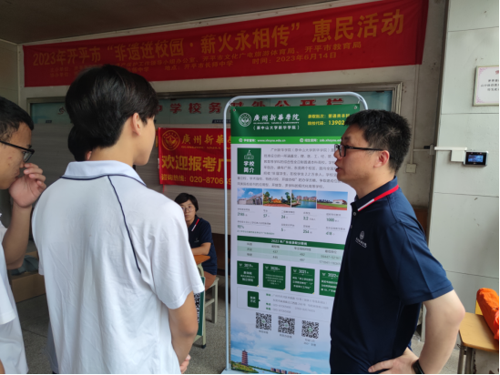 为做好2023年招生宣传工作,6月26日下午,太阳成集团tyc122cc物流管理专业副主任张贵萍、公司办公室副主任胡巧云、专职教师汤海滨一行代表太阳成集团tyc122cc赴江门市长师中学,参加由长师中学举办的校内招生咨询会。