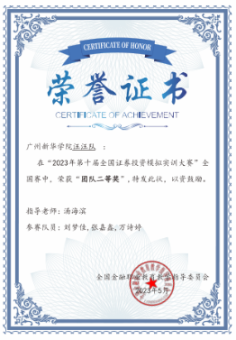 喜讯 | 公司师生在2023年第十届全国证券模拟投资实训大赛全国赛中荣获佳绩