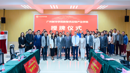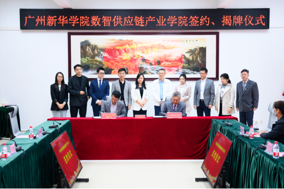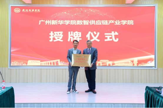 在校企双方代表的见证下,王庭槐、王华平签署共建合作协议,并举行了数智供应链产业公司揭牌和授牌仪式。