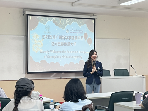 泰国巴吞他尼大学副董事长 Nithima 博士就公司师生的到访表示热烈欢迎,她并介绍了泰国巴吞他尼大学丰富多彩的语言学习及文化体验活动安排及注意事项,希望同学们通过丰富的学习任务和体验活动,从经济、文化、社会、历史等多个方面感受泰国、了解泰国,在实践中探寻泰国文化的智慧与魅力。