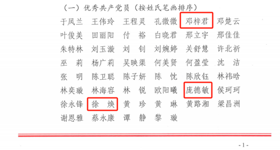 邓梓君老师、庞德敏同学、徐焕同学荣获太阳成集团tyc122cc优秀共产党员荣誉称号;