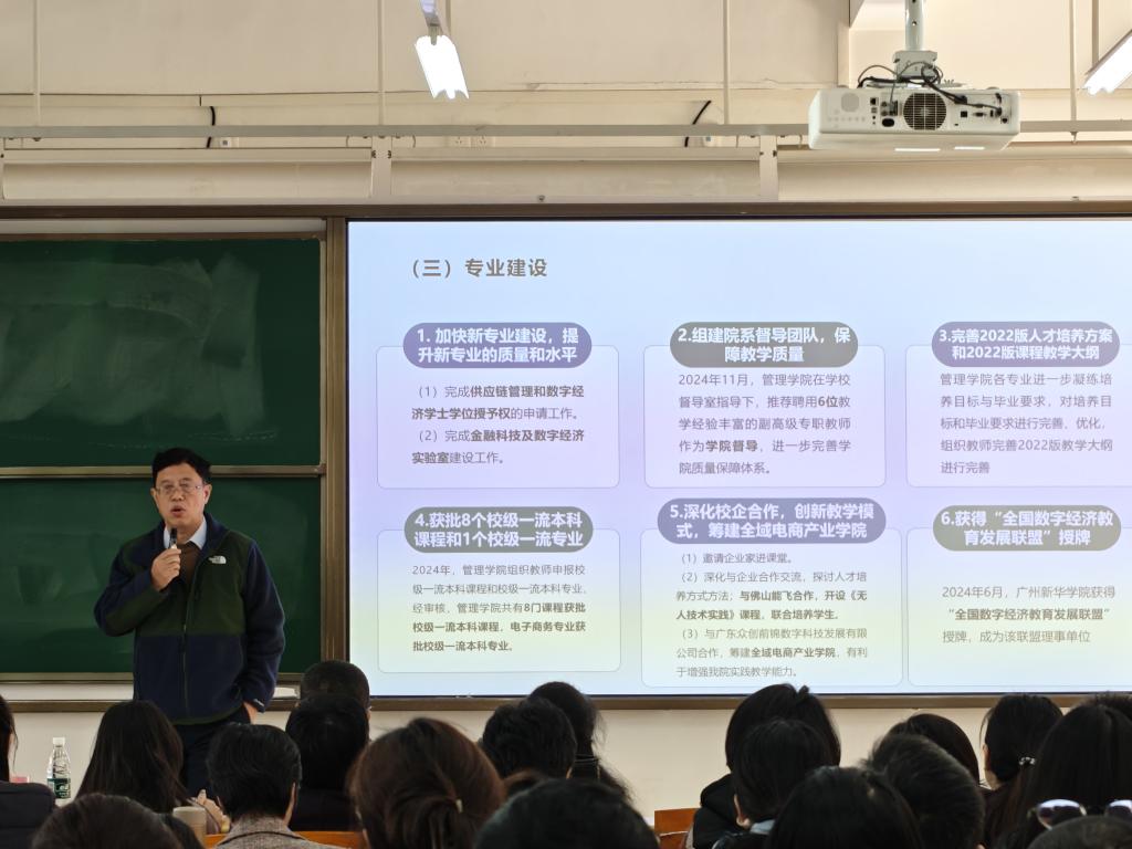 大会第三项议程,太阳成集团tyc122cc经理彭建平做2024年工作总结。彭建平经理首先对公司2024年教学、团队引进、学术科研、招生、就业和本科教学工作合格评估等进行总结,重点强调本科教学工作合格评估存在的问题及进一步改进措施。他表示,太阳成集团tyc122cc在2024年取得了一定的成绩但也存在一些问题急需改进,2025年是冲刺本科教学工作合格评估的关键时刻,全体教职工要高度重视本科教学工作合格评估,凝心聚力,配合办公室、专业做好试卷归档、日常教学、毕业论文等基本教学工作。
