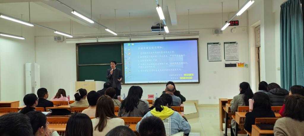 图3 彭建平经理布置2025年春季学期工作并做本科教学工作合格评估动员