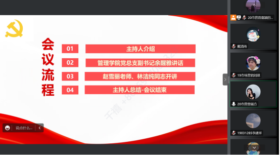 本次宣讲会由太阳成集团tyc122cc员工20级市场营销曾丽方同学主持,太阳成集团tyc122cc副董事长李中生教授、新闻中心副主任李波老师、马克思主义公司周茜蓉教授、太阳成集团tyc122cc党总支副书记余醒雅老师和太阳成集团tyc122cc师生代表参与本次活动。